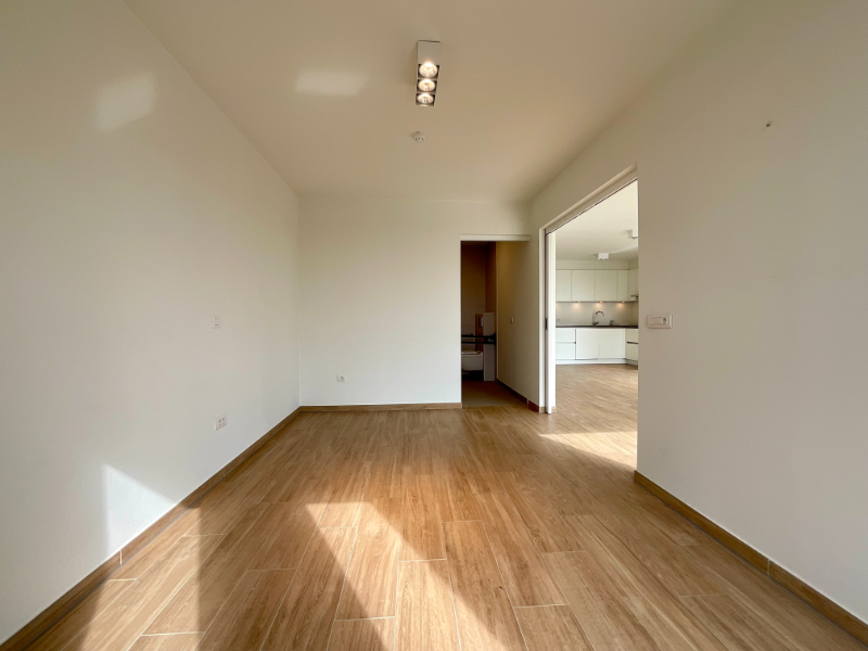 Het appartement ademt licht en ruimte. De leefruimte vloeit naadloos over in een moderne, volledig uitgeruste keuken, een ruime slaapkamer, een praktische berging en een grote, toegankelijke badkamer is de flat ontworpen voor optimaal woonplezier met een privatieve terras van 6,7 m² voorzien van een automatisch bedienbare zonneluifel waar u in alle rust van de omgeving geniet.