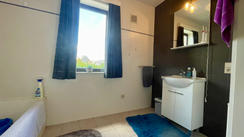 Het appartement gelegen op de eerste verdieping bestaat uit een inkomhal, leefruimte met open keuken, ruime berging, nachthal, 2 slaapkamers, een badkamer en een apart toilet. Het appartement is voorzien van een airco, en automatische rolluiken aan de straatzijde.